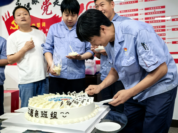 學(xué)習(xí)結(jié)束后,就進(jìn)入了第二個(gè)班組活動(dòng)——回顧往昔,慶?!叭比龤q生日。磨工班組的成員們齊聲喊出“磨工班組三歲啦!”,有人趕忙去拿蛋糕,有人忙著搬桌子,還有人拆蛋糕包裝。組員彭高和高強(qiáng)小心翼翼地拿著蛋糕轉(zhuǎn)來轉(zhuǎn)去,認(rèn)真找著合適的角度,想把這開心的一刻拍下來留作紀(jì)念。作為這個(gè)大家庭的一員,每個(gè)人都在用心為這場(chǎng)慶祝活動(dòng)出力,充分展現(xiàn)出團(tuán)隊(duì)的凝聚力 。