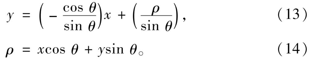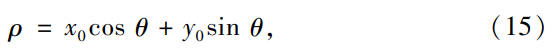 將圖像中所有的點(xi,yi)代入(14)式中,如圖15所示,如果多個不同的點在極坐標系中得到的曲線相交,便意味著這些點可以連成一條直線。如果同時相交的數量超過了設定的閾值,則對該直線進行擬合。
