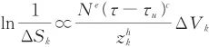 式中△Sk代表單元體積幸存概率,N代表每一轉(zhuǎn)的應(yīng)力循環(huán)次數(shù),τ代表滾道接觸下的切應(yīng)力,τu代表材料的疲勞極限切應(yīng)力,△Vk代表應(yīng)力作用的單元體積,zk代表應(yīng)力作用深度,e、c、h代表通過試驗確定的Weibull參數(shù)。