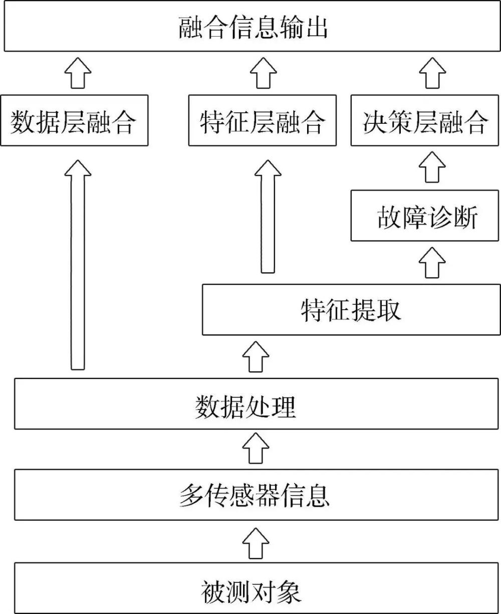 按照數(shù)據(jù)抽象的層次,融合可以劃分為3個級別,數(shù)據(jù)層融合、特征層融合及決策層融合,見圖7。